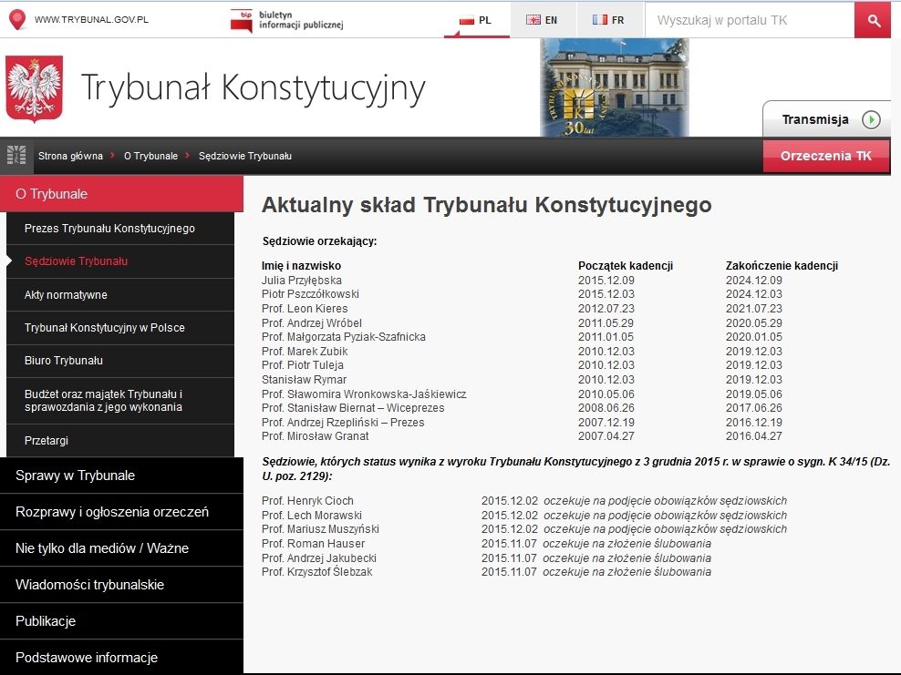 Sprawa w Trybunale Konstytucyjnym ma sygnaturę P 9/15 i czeka na rozpatrzenie.